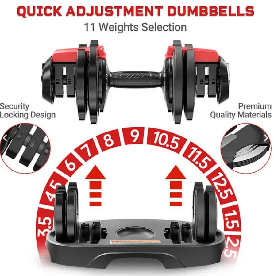 Denne justerbare håndvægt på 12,5 kg er et moderne og pladsbesparende alternativ til et helt stativ af traditionelle håndvægte. Med hele 11 forskellige vægtindstillinger fra 1,5 kg til 12,5 kg (1,5 – 2,5 – 3,5 – 4,5 – 6 – 7 – 8 – 9 – 10,5 – 11,5 – 12,5 kg) får du maksimal fleksibilitet i din styrketræning. Den kompakte løsning gør det muligt at udføre både lette øvelser for udholdenhed og tunge løft for muskelopbygning – alt sammen med blot ét enkelt redskab.